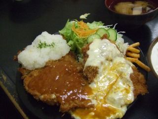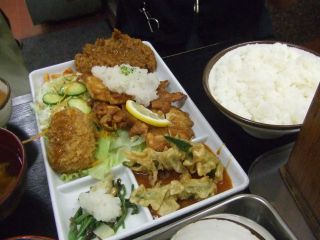 Hi-lite (ハイライト食堂)2006/09/21 まさに学生さん向けという感じのお店. 学生時代にこういうお店が近くにあったら結構お世話になってたと思う. 左は三色ジャンボチキンカツ定食.アメリカンソースとチーズが凄い迫力. 体調が良いときにでも一度挑戦してみたいが,もたれてしばらく気分が悪くなりそうな気がする・・・ 私が食べたのはたっぷり野菜の豚シャブ鍋.ご飯つきで620円.味が薄かった(^^;