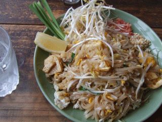 THAI CAFE KATI †2006/12/14 河原町竹屋町上る東側にあるタイ料理のお店. 雰囲気が良く,またのんびりとしてて居心地が良い. ランチのパッタイ(タイ風ヤキソバ)と揚げ春巻きのセット950円. タイ料理の場合,聞きなれない名前のものが多いため メニューを見ても良くわからず困るのだが, この店はメニューに写真がついているので安心. 一人でも大丈夫.