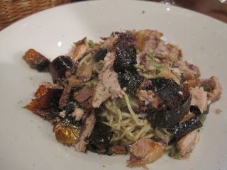 ryuen †2009/09 三条室町西入る南側にあるイタリアン. 長いこと入院していた友人の快気祝いで行ったお店. ハム盛り合わせ1260円 パン 岩ガキ800円×2=1600円 ワイン サンマのタリオリーニだったかな?(1570円) 鴨モモのなんとかいうやつ(1990円) 以上,ふたりで12320円なり. カウンター席もあるので一人でも大丈夫